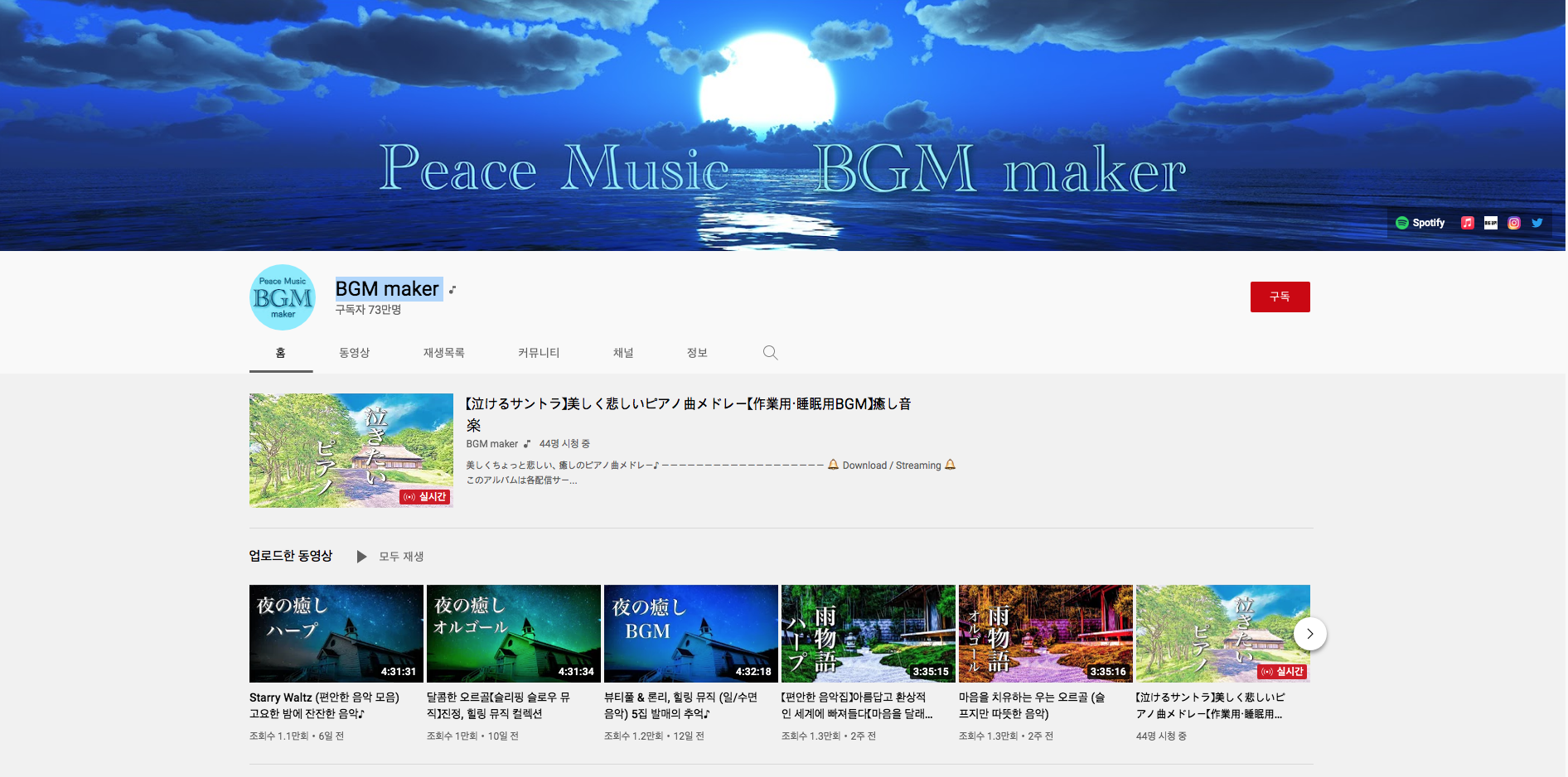 세번째 구독자 73만명의 BGM maker 입니다