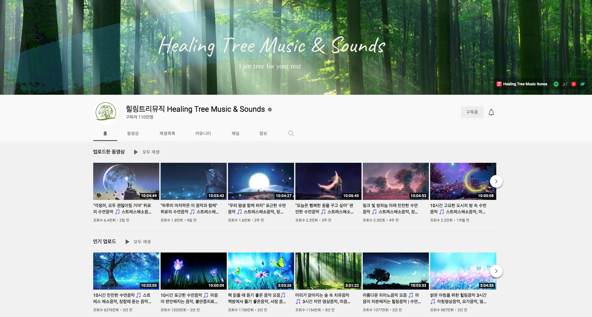 먼저 구독자 110만명의 힐링트리뮤직입니다