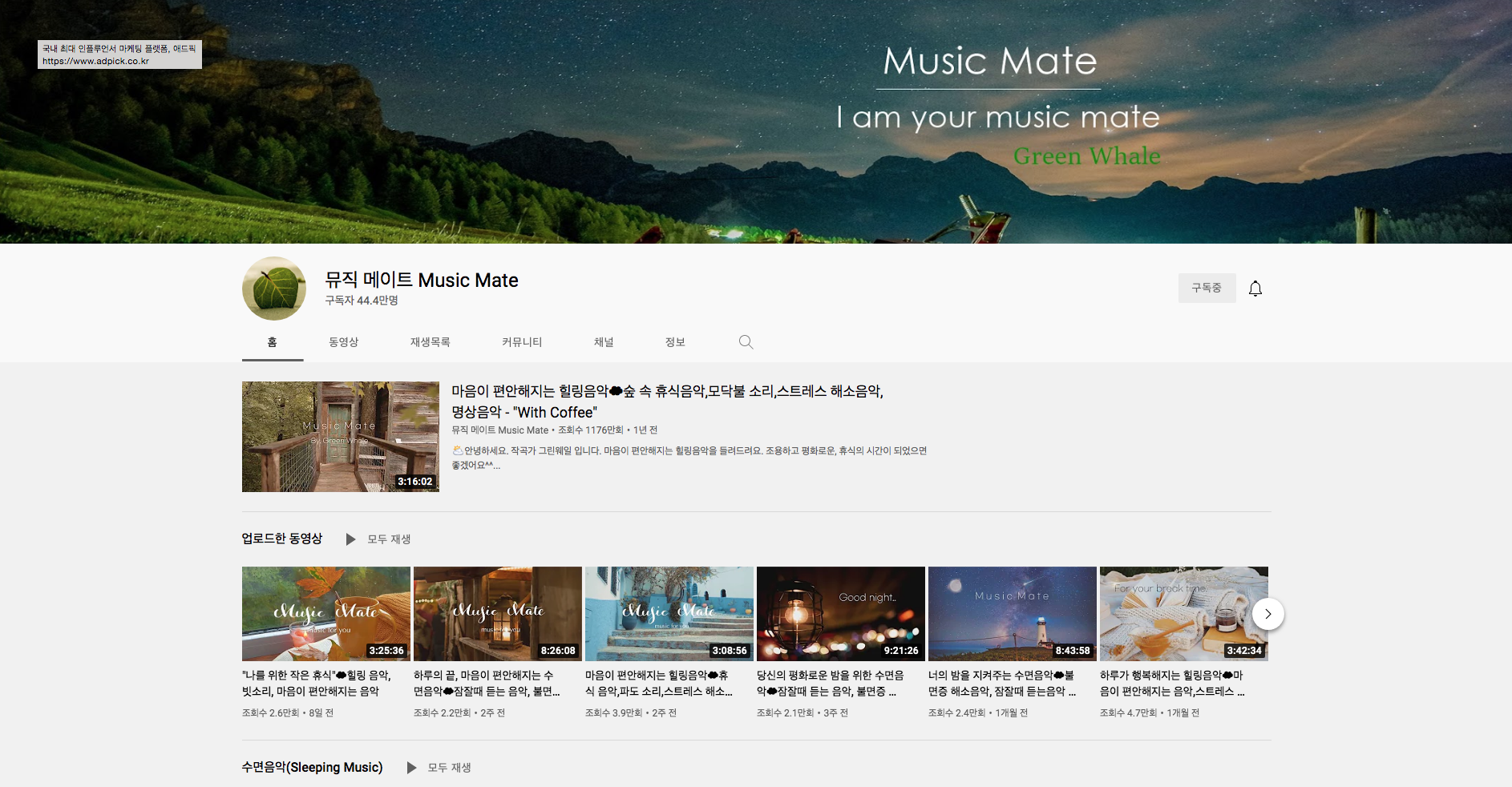 다섯번째 구독자 44만명의 뮤직메이트 입니다