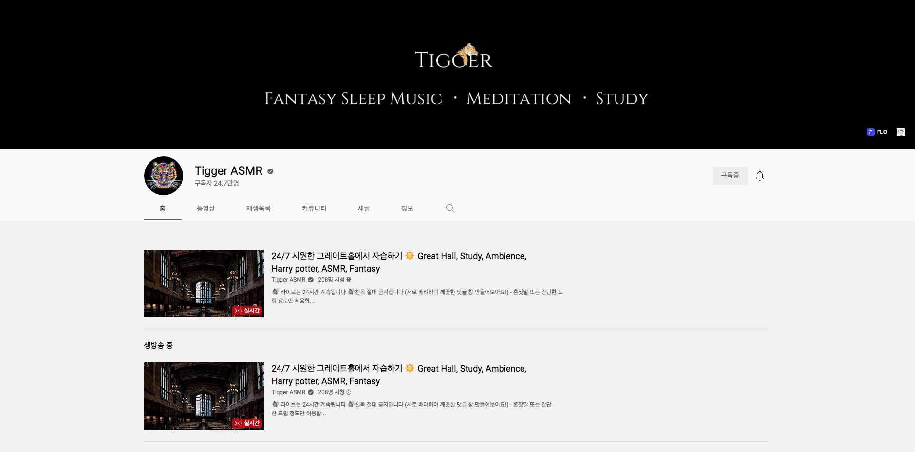 여섯번째 구독자 24만명의 타이거 ASMR 입니다