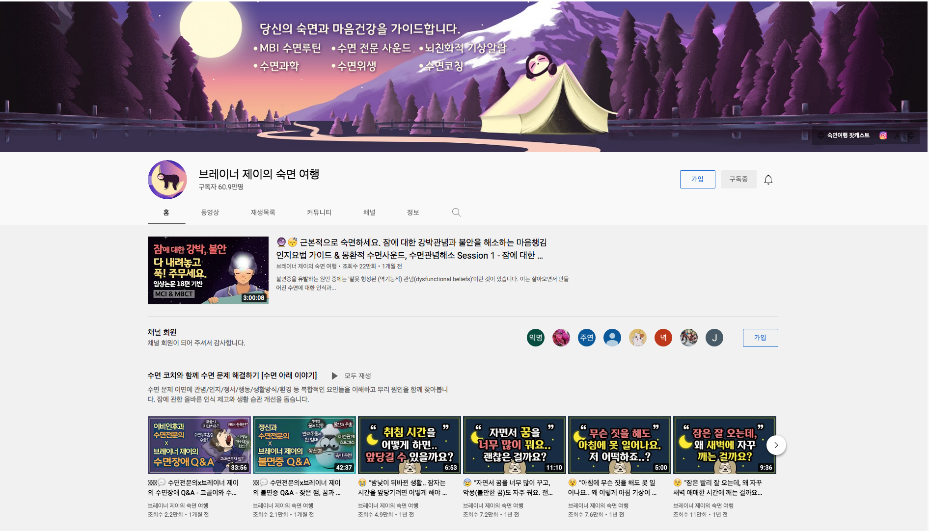 두번째 구독자 60만명의 브레이너 제이의 숙면 여행입니다