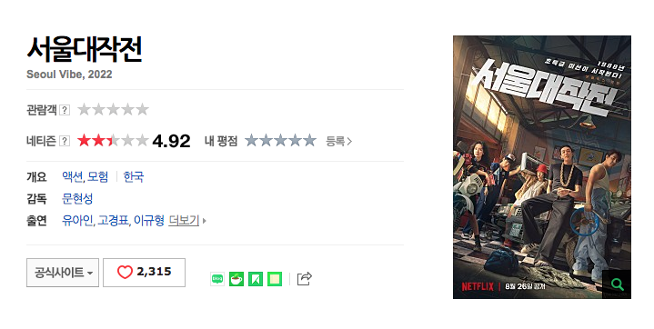 하지만 네이버 평점은 참혹하기만 합니다.