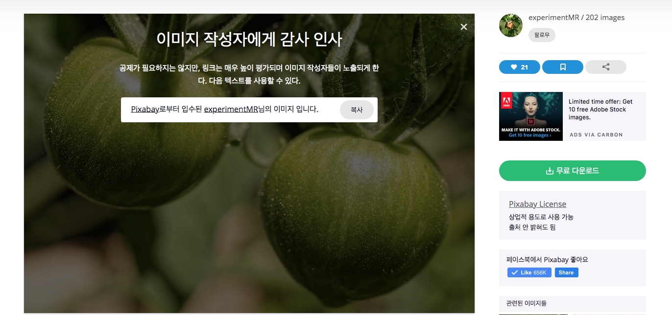 솔직히 그런 일은 상도에 어긋나잖아요. 아무튼 오늘 픽사베이 사이트에 대해서 사용법과 저작권 관련해서 제법 긴 글을 올렸습니다. 픽사베이로 가는 법은 검색하면 뜹니다. 링크를 붙이면 저품질이 될까하여 링크는 안 붙입니다. 주소는 아래에 남겨놓습니다. 감사합니다.